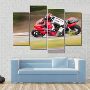 Experience the thrill of motorcycle racing with this dynamic canvas art. Featuring a motorcyclist in racing gear, the intense motion blur captures the speed and excitement of the track, making it a striking addition to any space.