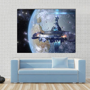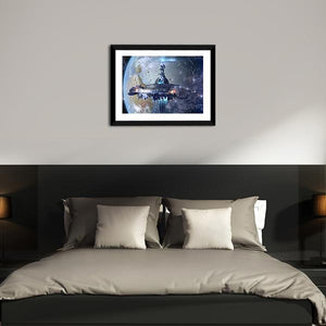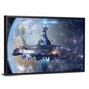 Explore the awe of outer space with this riveting canvas art featuring a vibrant space station and distant stars. The glowing lights and intricate details create a futuristic atmosphere, perfect for any modern décor.