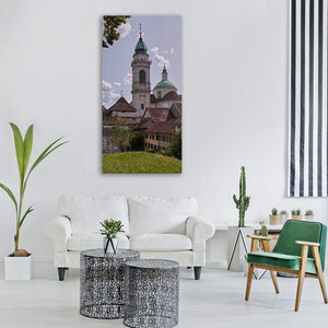 Steeple Church In Switzerland Vertical Canvas Wall Art