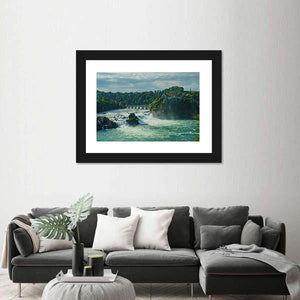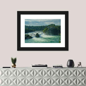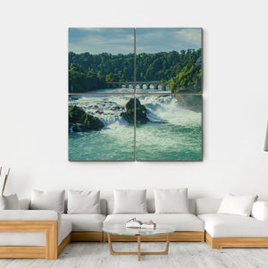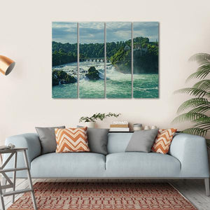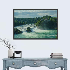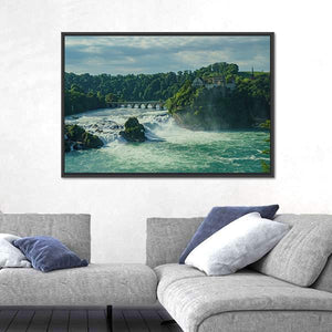 This canvas wall art captures the stunning beauty of Rhine Falls, featuring dynamic foaming water and a distant multi-arched bridge. Its refreshing palette of blue, green, and white brings a natural feel perfect for any room.