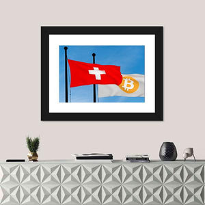 This canvas art features the Swiss flag and the Bitcoin flag side by side, creating a bold and dynamic visual. The contrasting colors—red, white, and gold—symbolize innovation and tradition, making it a striking addition to any modern decor.