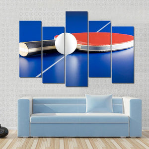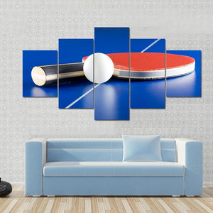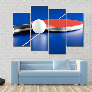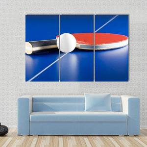 This dynamic canvas art features a close-up of a ping pong paddle and ball, capturing the energy of the sport. The bold colors of blue, red, and white create a modern and abstract vibe, perfect for adding a sporty touch to your décor.