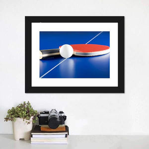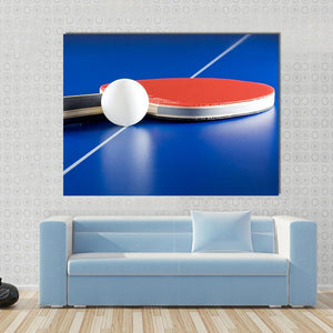 Bring home the thrill of table tennis with this dynamic close-up of a racket and ball. The vibrant blue and red colors, paired with a modern abstract style, create an energetic vibe that fits perfectly in a game room or sports-themed space.