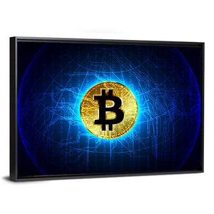 Futuristic Glowing Bitcoin Network Canvas Wall Art