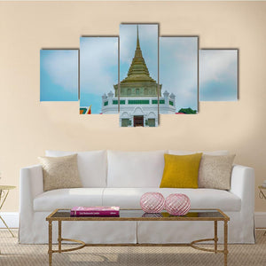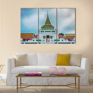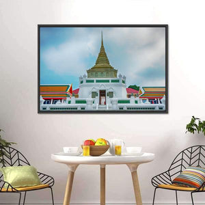 Wat Kaliyamit Woramahawihan Canvas Wall Art depicts the temple’s ornate pagoda and architectural details in a photographic, low-angle view that feels serene, majestic and spiritual. The white, gold, green and blue palette and vivid spire and roof details make it a calm choice for living room, entryway or a meditation corner.