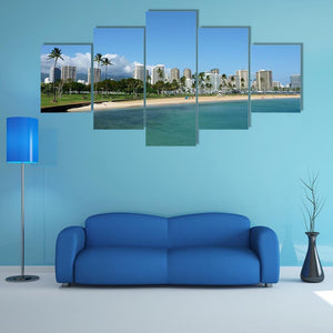This canvas wall art captures a peaceful beach scene on Oahu, featuring sandy shores and swaying palm trees under a clear blue sky. Its realistic style brings a touch of tropical tranquility, perfect for brightening up your home decor.
