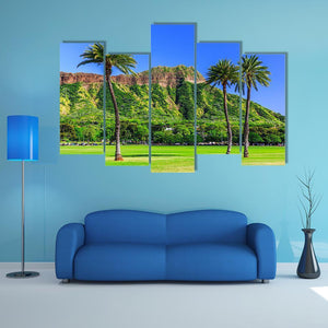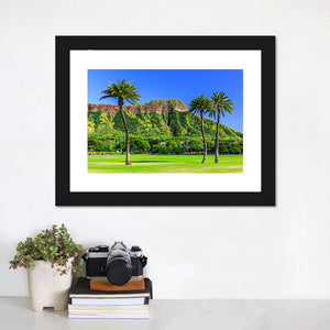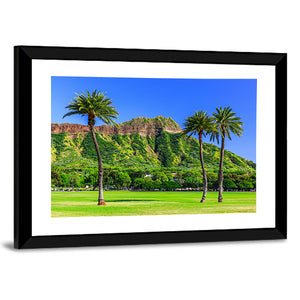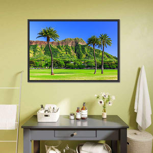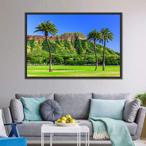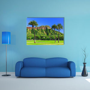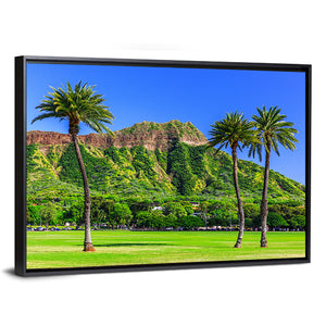 Diamond Head, Honolulu with Palm Trees Canvas Wall Art