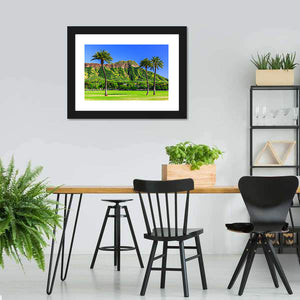 This canvas features vibrant palm trees against the backdrop of the iconic Diamond Head Crater. With a tropical mood highlighted by lush greens and clear blues, it brings a refreshingly realistic landscape to your wall.