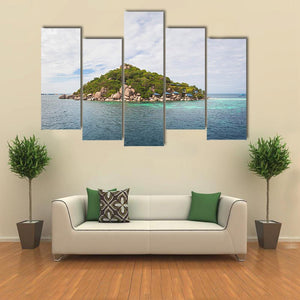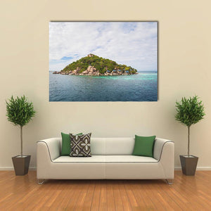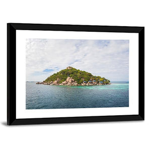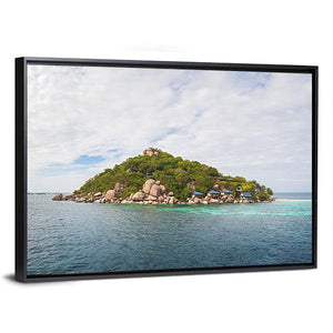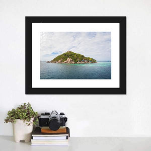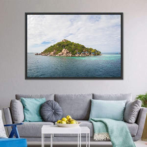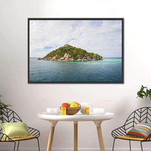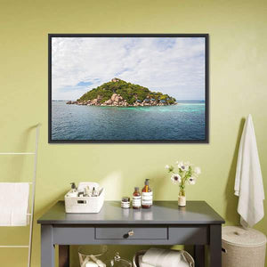 Capture the serene beauty of the Koh Nang Yuan island with this landscape canvas art. Featuring a peaceful scene of tropical vegetation and calm blue waters, this artwork brings a touch of tranquility to any space.
