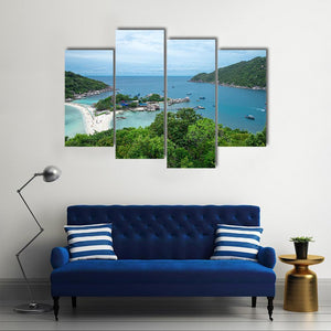 Experience tranquility with our Koh Nang Yuan Island canvas wall art, featuring a high-angle view of a tropical paradise. This piece captures the serene beauty of clear turquoise waters, lush green hills, and a pristine beach, making it a soothing addition to your décor.