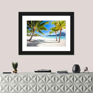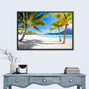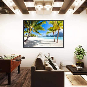 Bring the tranquility of Bora Bora into your space with this serene landscape of Otemanu Mountain. Crafted in soothing shades of blue and white, this artwork beautifully captures idyllic tropical scenes featuring palm trees and sandy beaches, perfect for adding a touch of nature's beauty to your decor.