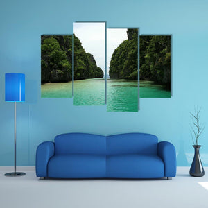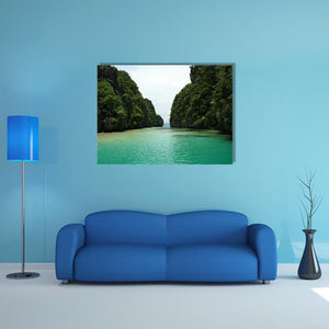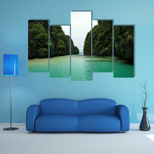This landscape canvas captures the serene beauty of El Nido, featuring lush green trees and dramatic rock formations framing a tranquil body of turquoise water. Its realistic style brings the charm of this tropical paradise into your home.