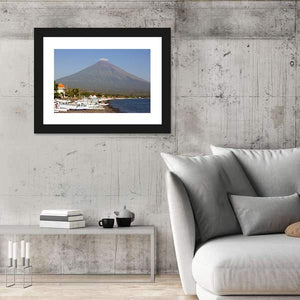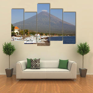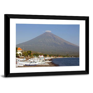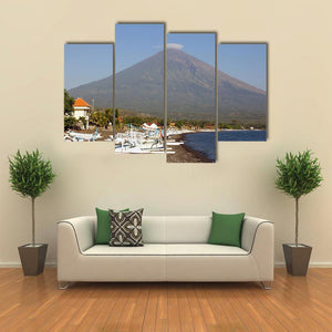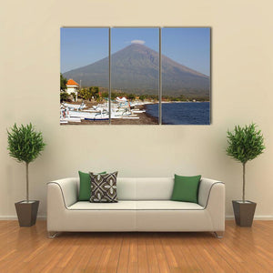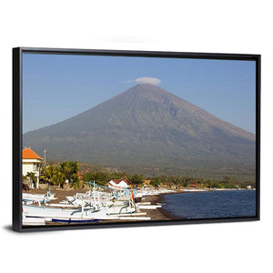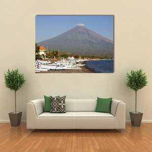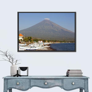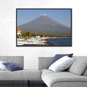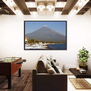 Volcano and Canoes in Indonesia Canvas Wall Art