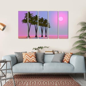 Bring a touch of tranquility to your space with this serene canvas art featuring palm trees, a beach, and gentle ocean waves. The soothing palette of green, pink, and blue creates a peaceful atmosphere that complements modern decor beautifully.