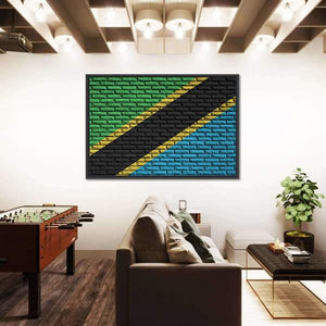 Celebrate your connection to Tanzania with this striking canvas flag artwork. Featuring a bold palette of green, yellow, black, and blue, it provides a graphic, modern touch to your decor. This piece is perfect for adding character to any room.