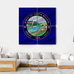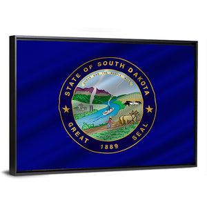 Celebrate the proud heritage of South Dakota with this canvas art featuring the state seal. Its serene composition showcases natural elements like mountains and a river, reflecting a rich agricultural landscape and a sense of history.