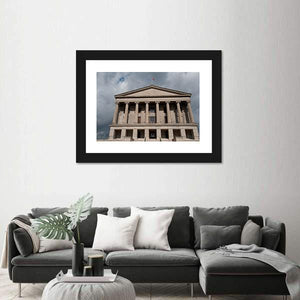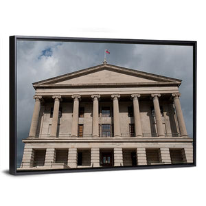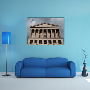 This canvas features a grand, Neoclassical building set against a dramatic, overcast sky. Detailed elements like fluted columns and a layered facade capture the historic charm of Nashville's skyline, making it a striking addition to any wall.
