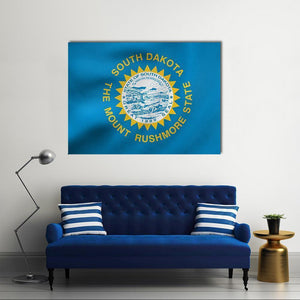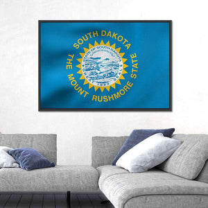 Celebrate South Dakota's heritage with this canvas wall art featuring the state seal. The vibrant palette of blue, yellow, white, and green creates a formal and patriotic atmosphere, making it a striking piece for your decor.
