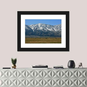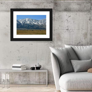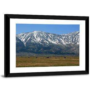 This landscape canvas art captures the vast beauty of snow-capped mountains and tranquil grasslands, evoking a serene, rural atmosphere. A striking piece that suits various home settings.