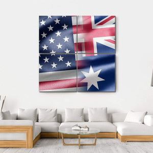 Celebrate your connection to the USA and Australia with this bold canvas art featuring a striking overlay of their flags. Its modern and graphic style evokes a sense of patriotism, making it a meaningful addition to any space.