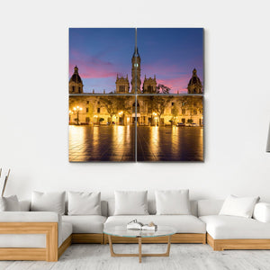 This canvas print beautifully captures the Valencia City Hall, featuring its elegant architecture set in a peaceful plaza. The glowing windows and reflections create a romantic atmosphere, making it a striking addition to your home decor.