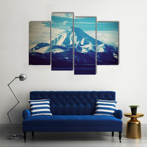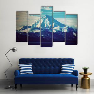 This stunning canvas art features a magnificent snow-capped volcano set against a serene lake and cloud-filled sky. The cold, majestic landscape evokes a tranquil atmosphere, making it an ideal addition to any nature-inspired décor.