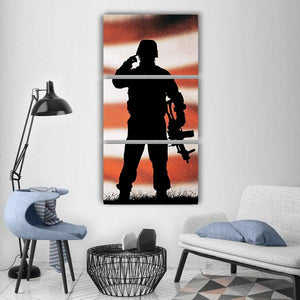 This canvas art features a soldier saluting while holding a rifle, set against an American flag backdrop. It creates a patriotic and solemn atmosphere, making it a meaningful addition to your wall decor.