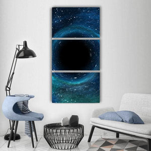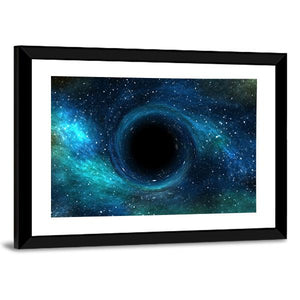 This abstract artwork features a mesmerizing black hole set against a star-filled galaxy. With its deep blue and black hues, it evokes a cosmic, mysterious ambiance perfect for modern decor.