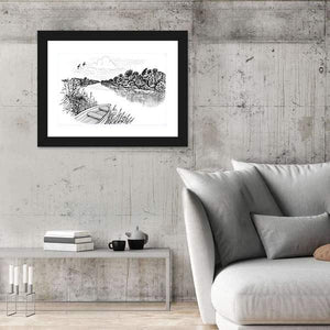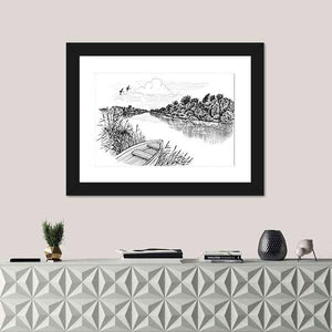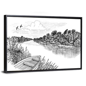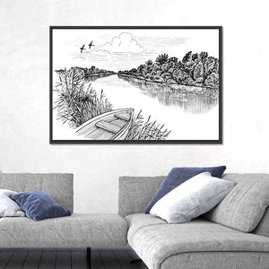 Summer Riverbank Ink Drawing Canvas Wall Art