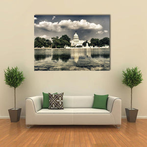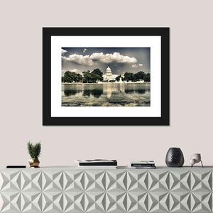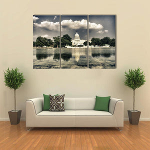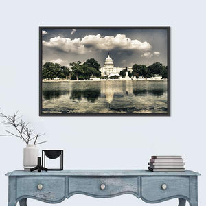 United States Capitol Sepia Reflection Photo Canvas Wall Art