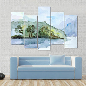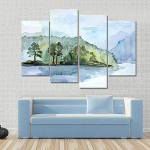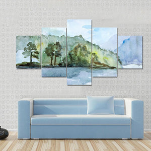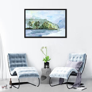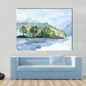 This watercolor seascape features a serene depiction of water reflecting soft hues of blue, green, and grey. Its impressionistic style evokes a tranquil atmosphere, making it an ideal addition to modern wall decor.