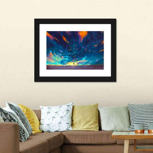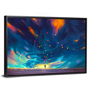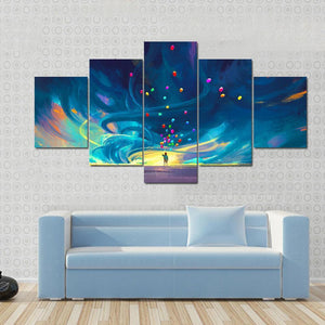 Child Holding Balloons Illustration Canvas Wall Art