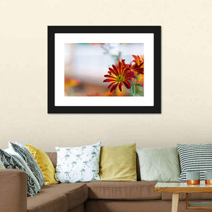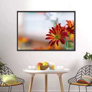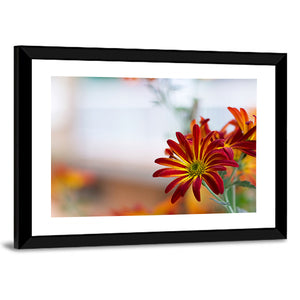 This canvas art features a vibrant close-up of chrysanthemums against a serene sky. The composition highlights the beauty of nature with its rich colors and delicate petals, making it a lovely addition to any wall decor.