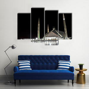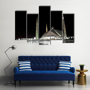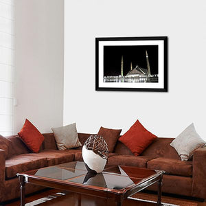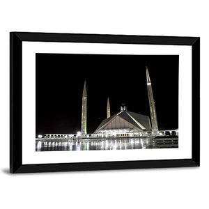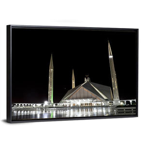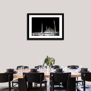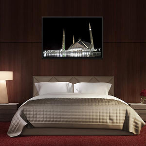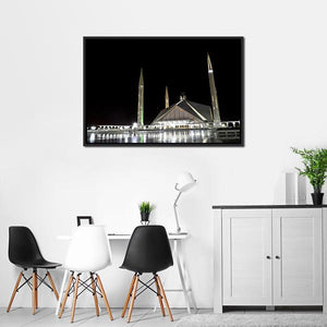 Capture the serene and grand beauty of the Shah Faisal Mosque with this canvas wall art. The symmetrical design showcases lit minarets and reflective water, creating a majestic atmosphere suitable for modern decor.