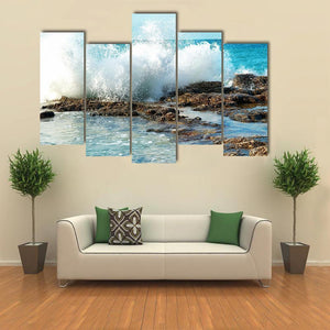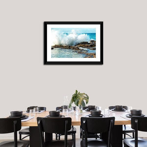 Experience the dynamic power of nature with the Big Breaking Waves Canvas Wall Art. This striking piece captures the energy of crashing ocean waves, accented by textured rocks and vibrant sea spray. Perfect for adding a touch of realism to your space.