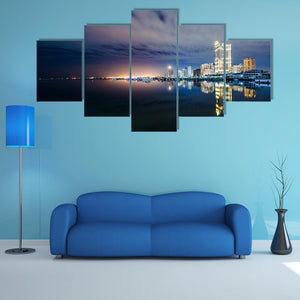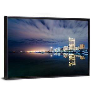 This canvas art captures the serene beauty of Manila Bay at night, showcasing a city skyline surrounded by shimmering water reflections and dramatic clouds. Its modern style fits seamlessly into urban decor, bringing a tranquil yet vibrant atmosphere to any space.
