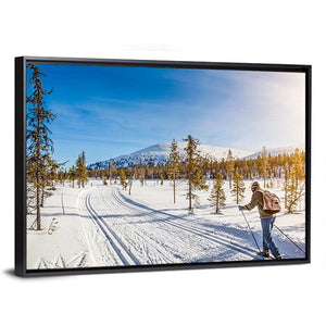 This canvas art captures a serene moment of a male skier gliding through a winter landscape. With peaceful hues of blue and white, it evokes a sense of calm and activity, making it a perfect addition to your home décor.