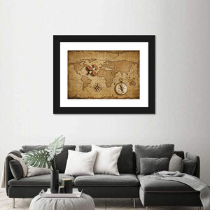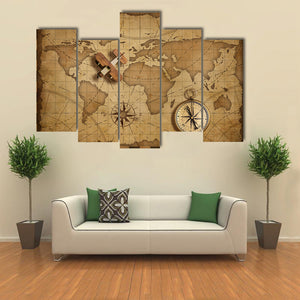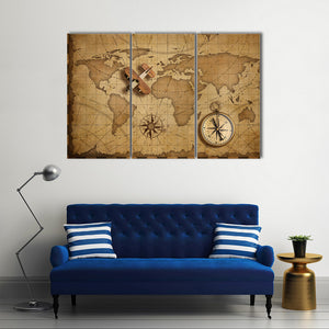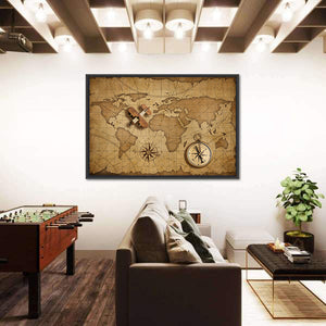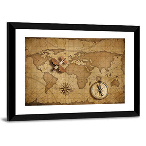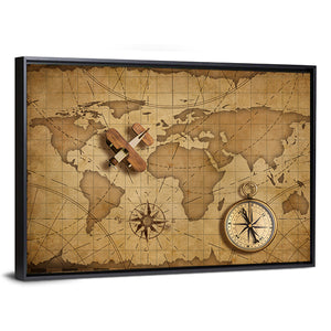 Small Wood Airplane Over World Nautical Map Canvas Wall Art