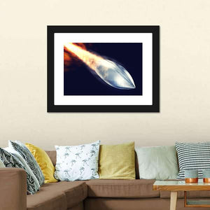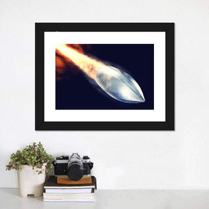 This abstract canvas art features a dynamic close-up of a bullet with an intense fire trail. The powerful silver, orange, and black palette adds a striking touch, making it an ideal statement piece for modern décor.