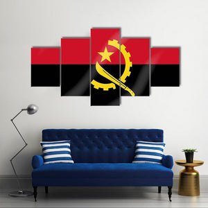 This canvas art features the bold and symbolic national flag of Angola, showcasing its vibrant colors of red, black, and yellow. The symmetrical design includes notable elements such as a star, machete, and gear, making it a striking addition to any modern décor.