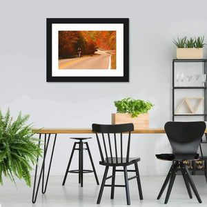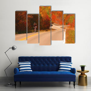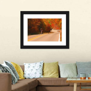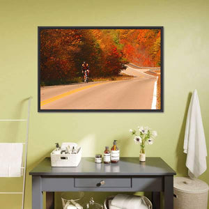 Cyclist on Winding Autumn Road Canvas Wall Art
