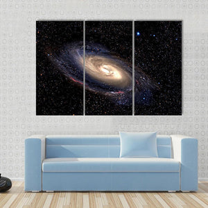 Capture the awe of the cosmos with this striking canvas art featuring a mesmerizing spiral galaxy. Its swirling motion and glowing core create a mysterious atmosphere, perfect for any space-themed decor.