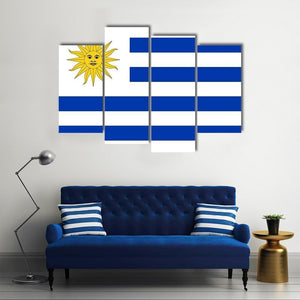 Uruguay Flag Canvas Wall Art shows the Uruguay flag’s sun with a face and blue-and-white stripes arranged in a symmetrical, bold graphic composition. Its modern, balanced look suits contemporary homes and room decor.