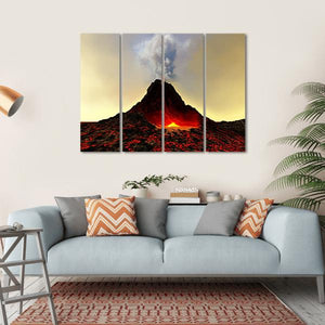 Experience the raw power of nature with this striking canvas wall art featuring an active volcano erupting with hot red lava and thick smoke. The intense colors of red, orange, and black create a dramatic scene that brings energy and emotion to any space.