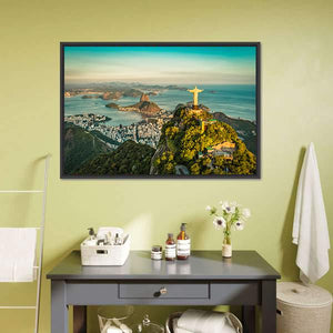 Capture the beauty of Rio de Janeiro with this panoramic canvas art, showcasing the iconic Christ the Redeemer statue against a breathtaking backdrop of mountains, ocean, and islands. The vibrant colors evoke a sense of awe, making it a striking addition to your wall decor.