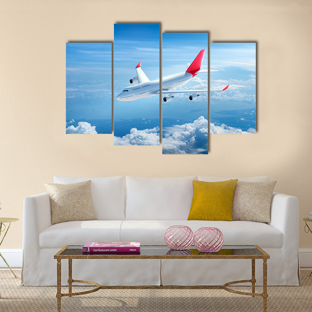 Elevate your space with our striking Airplane Flying Above Clouds Canvas Wall Art. This powerful canvas print captures the beauty of an airplane soaring through sunny skies, evoking a sense of awe and wonder. Perfect for art lovers or those looking to add a unique touch to their home decor.