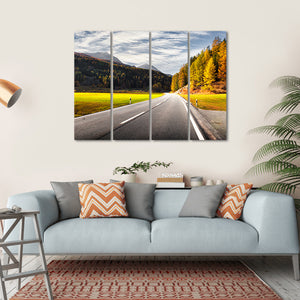 This stunning canvas art depicts a winding road nestled among majestic mountains and trees, capturing the serene beauty of Switzerland. The inviting autumn colors create a peaceful atmosphere, making it a perfect addition to any nature-inspired decor.