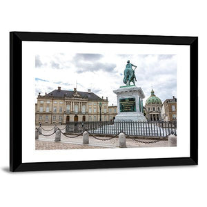 Capture the grandeur of Copenhagen with this serene cityscape featuring a majestic equestrian statue and classical architecture. The soothing palette of green, white, grey, and brown brings a touch of historical elegance to any space.