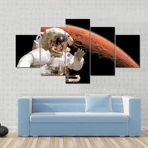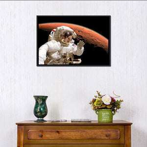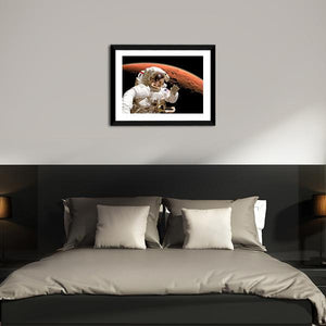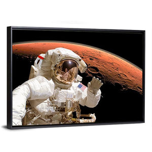 This artwork features an astronaut waving against the dramatic backdrop of Mars. With its photorealistic detail and awe-inspiring colors, it's a perfect piece for space enthusiasts.