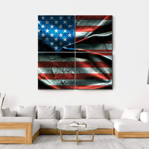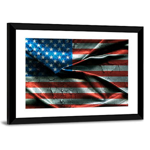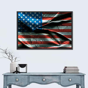 This canvas art features a close-up of the American flag, capturing its dynamic and crumpled texture. The weathered palette of red, white, blue, and grey conveys a strong sense of patriotism, perfect for expressing pride in your decor.